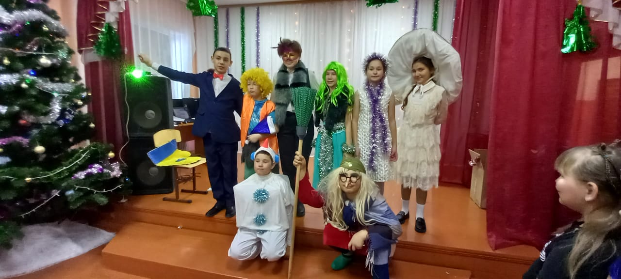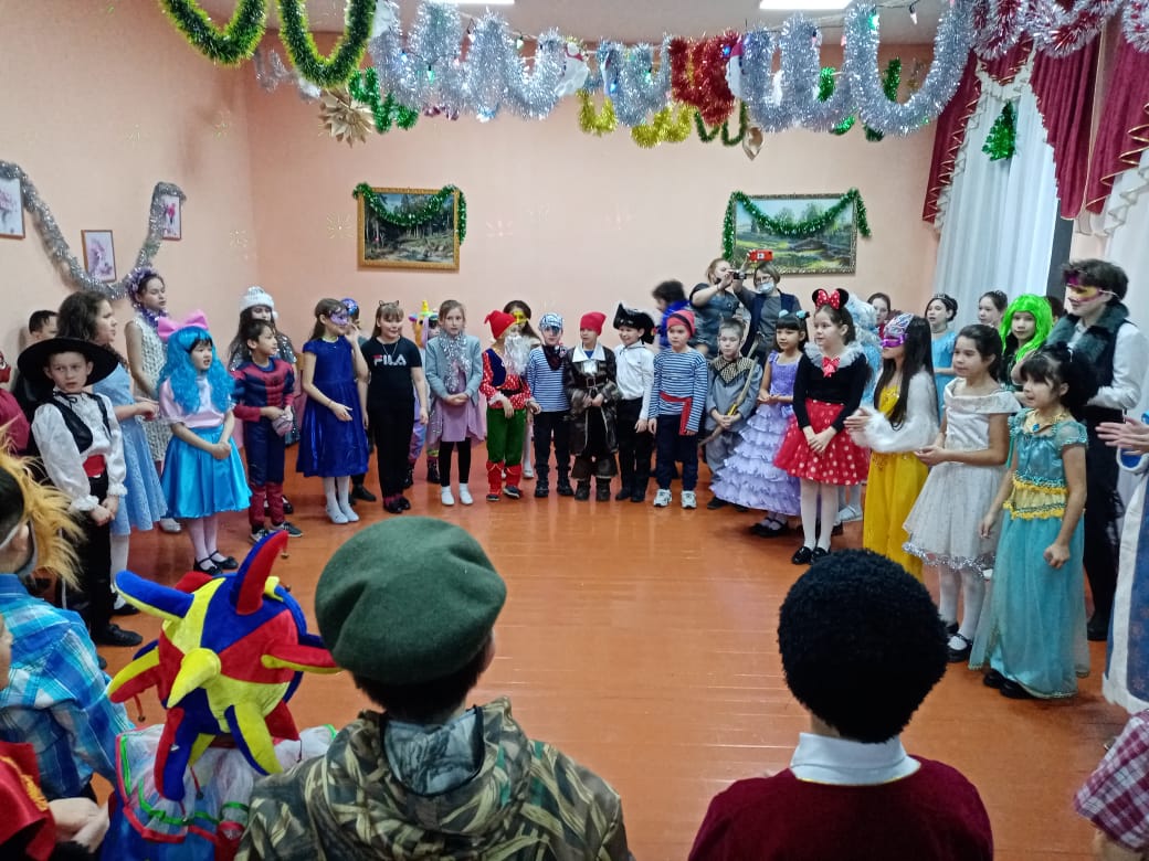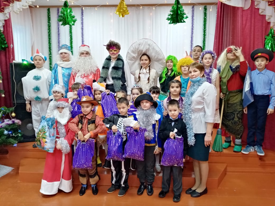 Новогодние утренники для 1-2,3-4,5-6 классов в 3 потока, согласно рекомендациям Роспотребнадзора. Дед Мороз и Снегурочка, Баба-Яга, Леший и другие сказочные персонажи поздравили ребятишек, послушали стихи и песни, вручили подарки, Все были очень довольны!