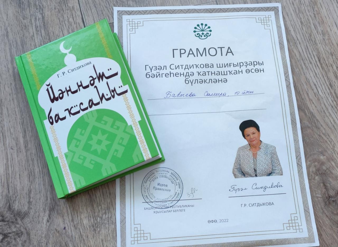 Башҡортостан Республикаһы яҙыусылар берлегендә үткәрелгән, Гүзәл Ситдикова шиғырҙары бәйгеһендә ҡатнашҡан Бакиева Самира "Уңышлы сығыш" номинацияһында бүләкләнә