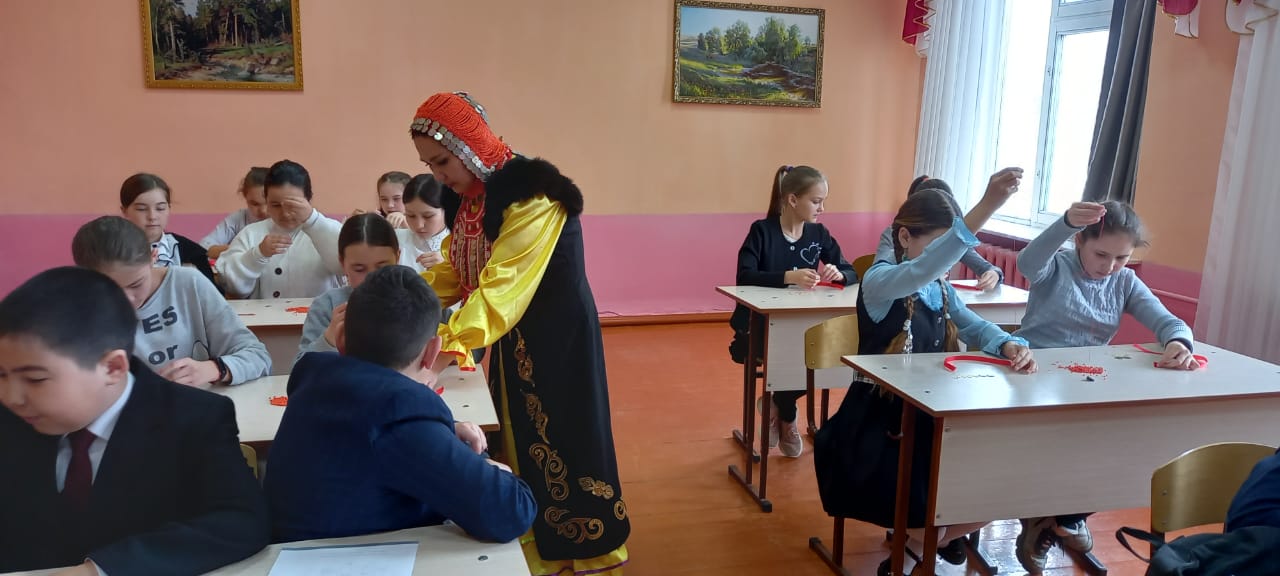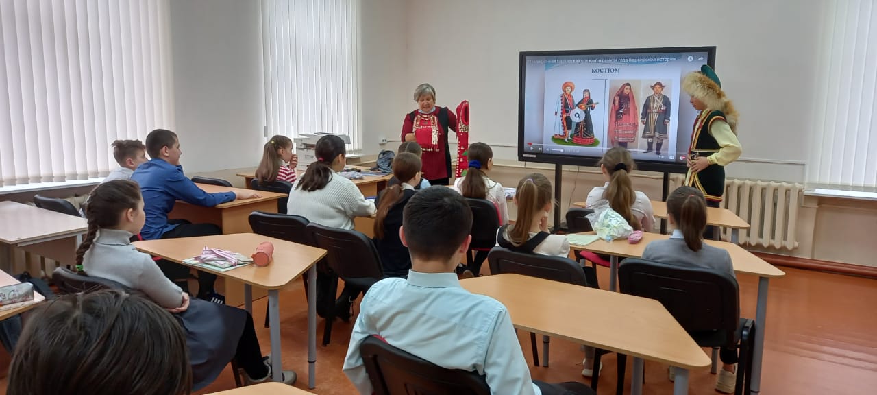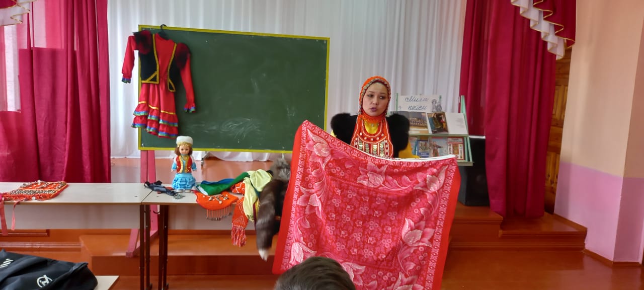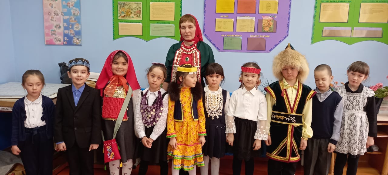 15 апреля - День национального костюма. Обучающиеся МБОУ СОШ с. Ильчино поразили разнообразностью ярких костюмов разных народов и национальностей. Учитель башкирского языка Хажиахметова Идия Рамазановна и библиотекарь села Ульданова Роза Урумбаевна подробно рассказали учащимся 1-7 классов историю возникновения нашего башкирского национального костюма, наглядно продемонстрировав свое выступление. Для девочек Роза Урумбаевна провела мастер-класс по изготовлению башкирских украшений.