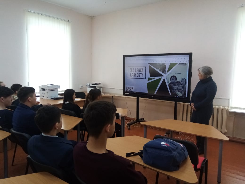 В МБОУ СОШ с. Ильчино были организованы мероприятия – уроки-реконструкции исторических фактов в годы Великой Отечественной Войны 1941-1945 годов «Без срока давности». Цель акции, проводимого ежегодно 19 апреля, сохранение исторической правды о преступлениях нацистов и их пособников в отношении мирных советских граждан в годы Великой Отечественной войны на оккупированной территории.