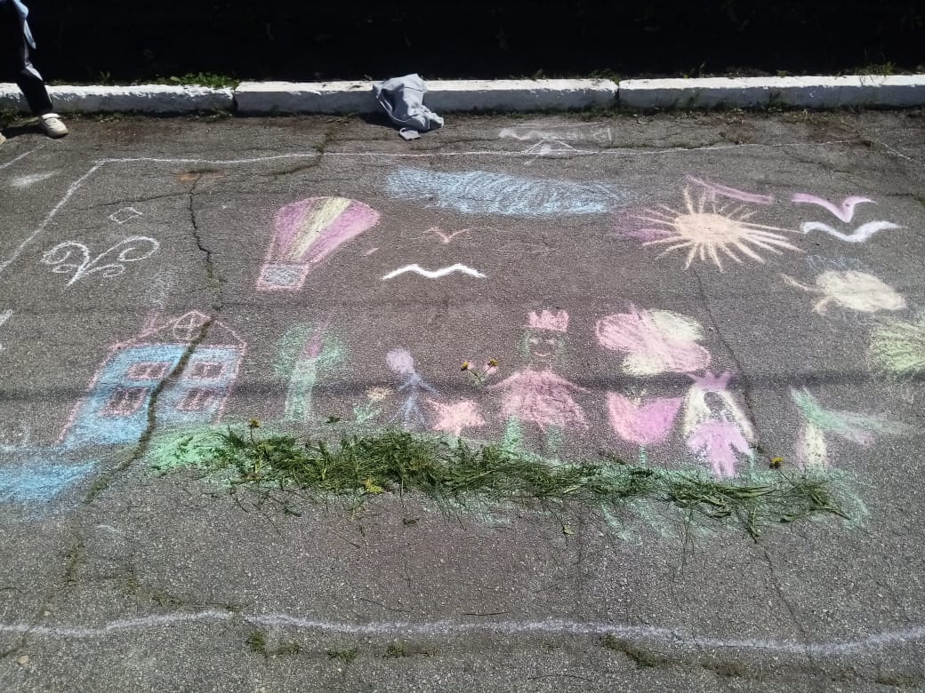 После вкусного обеда ребята были заняты рисованием на асфальте. У всех ребят на протяжении дня было хорошее настроение.