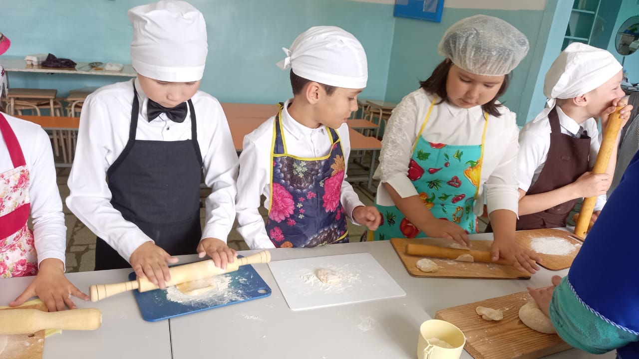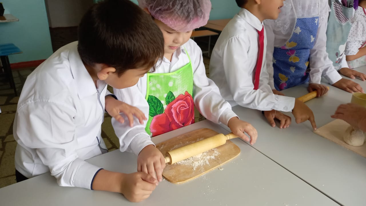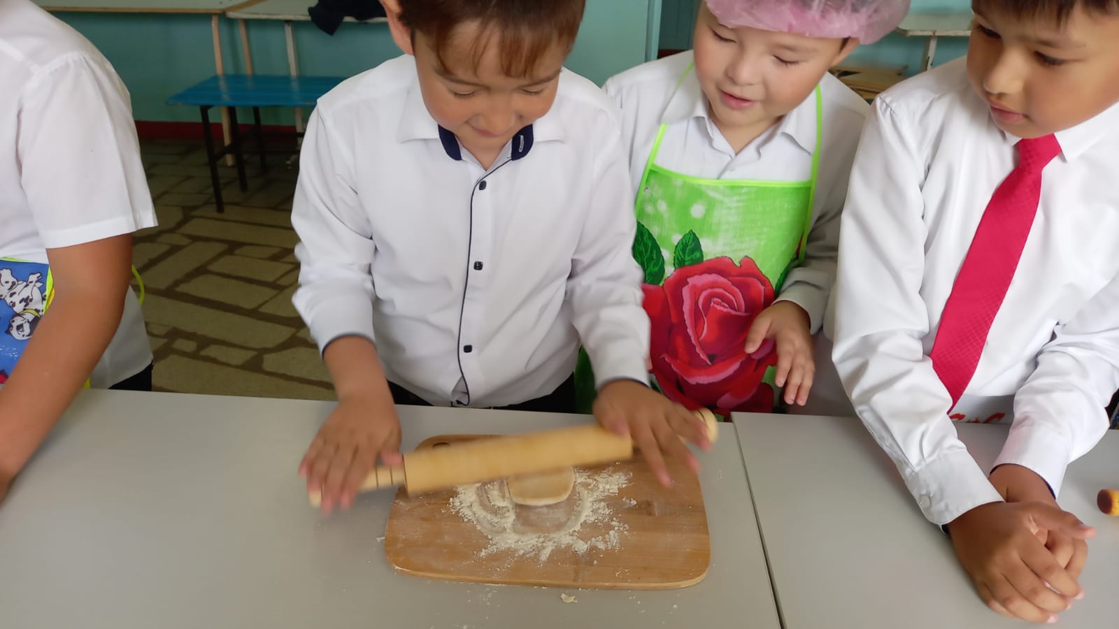Сегодняшний урок технологии у третьеклашек был приурочен Дню национальной кухни. Вместе с поваром З. Дильбаровной, председателем родительского комитета Л. Ураловной и классным руководителем дети учились готовить блюдо "Ҡош теле". Все этапы были пройдены детьми, строго соблюдался рецепт. После работы все вместе пили чай с результатом своего труда. Было здорово!