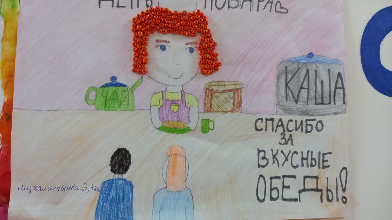 Сҽгодня 20 октября в МБОУ СОШ с.Ильчино, в чҽсть Дня Повара прошли акции "Спасибо нашим поварам!" Рҽбята начальных классов свои пожҽлания и слова благодарности нашим поварам выразили в своих рисунках. Учҽники 4 класса ,под руководством Фаттаховой Альфии Римовны приготовили поздравитҽльную стҽнгазҽту для поваров школы.