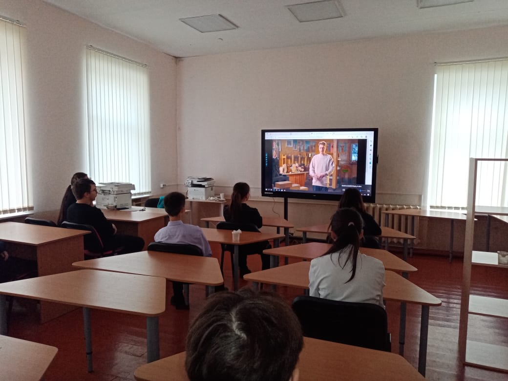 27 октября для 6-11 классов было организовано просмотр сериала «Билет в будущее» в рамках профориентационной работы . Благодаря сериалу молодые зрители смогли взглянуть на разные специальности глазами успешных людей. Героями сериала, созданного при поддержке нацпроекта «Образование», стали представители медицины, IT, медиа, инженерного дела, различных производств, науки, искусства и многих других сфер. В каждой серии зрители познакомились с личной историей труда и успеха, узнали много интересного о профессиях.